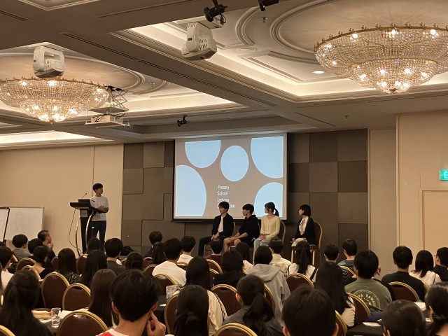 第一部では、本校の前期課程2年生まで在校していた仲間が登壇し、「私の現在地の共有」というテーマで、現在通っているシンガポールの学校生活等について話をしてくれました。
