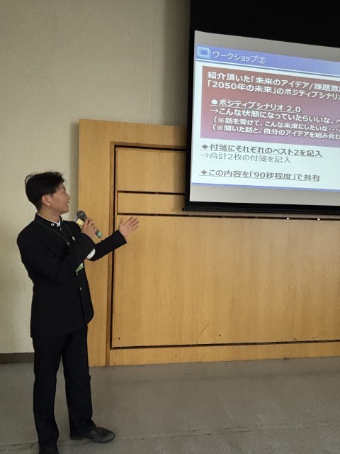 多くの高校から九段会場にはおよそ100人の参加者に集まっていただき、未来社会の共創について本校生徒のプレゼンをもとに考え、ディスカッションを行いました。