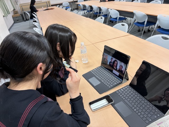 これまで文字のみでの交流だったこともあり、最初はお互いに少し緊張した様子も見られましたが、日本語での自己紹介からはじまり、次第に打ち解け、お互いの国の文化や日常生活について積極的に質問し合う姿が印象的でした。