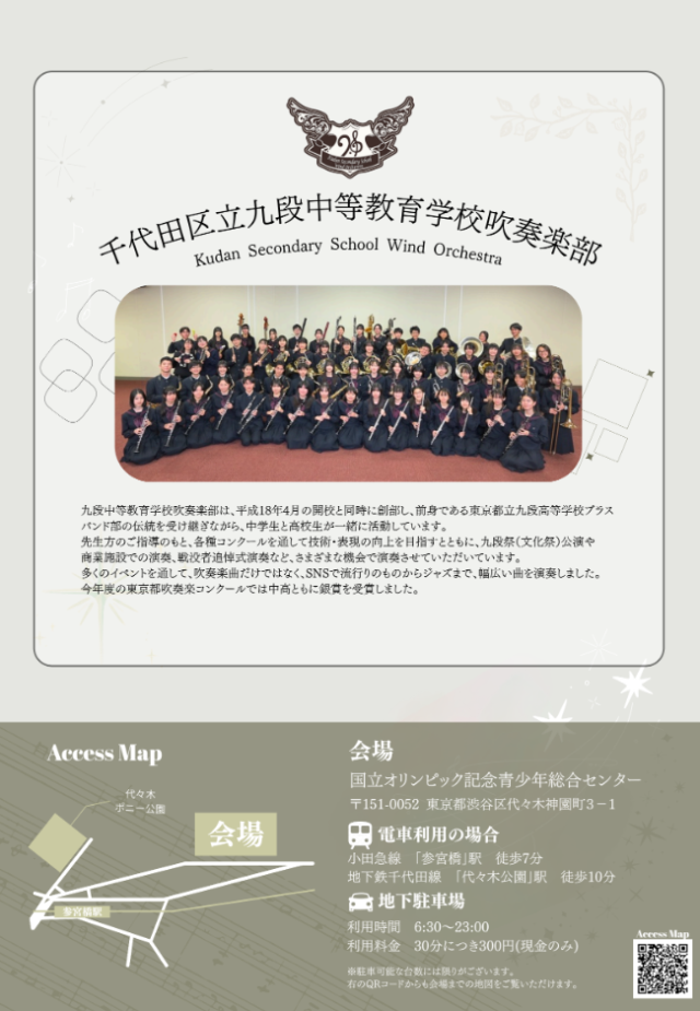 主催 千代田区立九段中等教育学校・九段中等教育学校吹奏楽部保護者の会