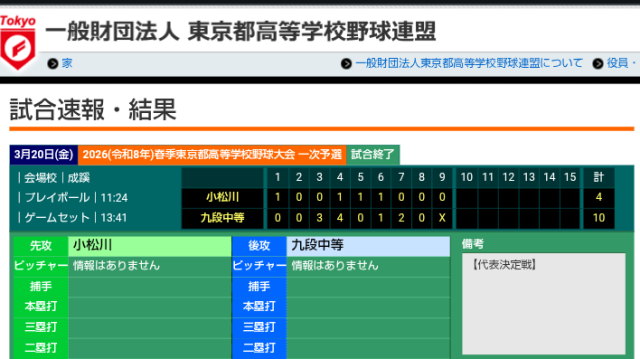 3月20日(金) VS 都立小松川高等学校 10ー4 〇