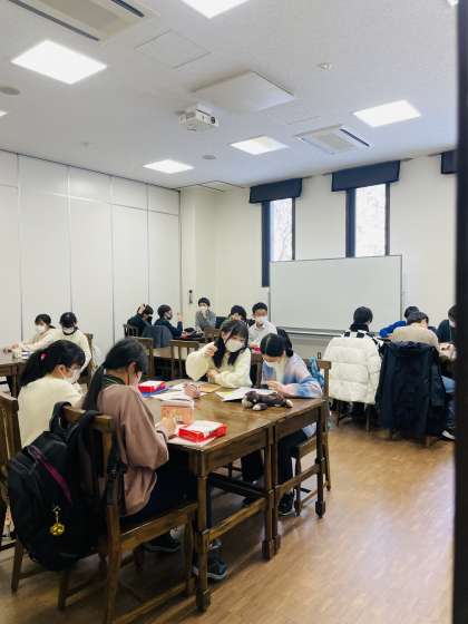 「2年英語合宿」午前 公開日 2022/12/21 更新日 2022/12/21 行事 おはようございます。 2日目の朝は、晴天に恵まれました。 朝早くから生徒は元気いっぱいです。 朝食を食べ、午前の授業を受けに行きました。